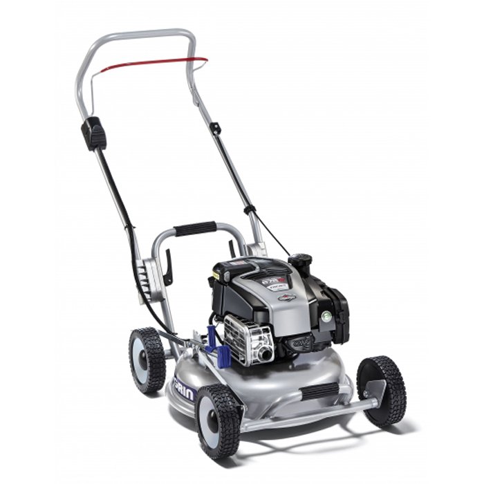 Tagliaerba con motore a scoppio Briggs&Stratton serie 675 da 5,5 cv con sistema di avviamento a batteria che permette di avviare la macchina senza tirare la fune ma semplicemente premendo un pulsante. La batteria consente più di 50 avviamenti con il pulsante con una carica completa. Maneggevole, con il telaio compatto, macchina ideale per giardini fino ad 800 mq. di dimensione. La struttura di questa macchina è molto solida e quindi duratura, nel caso di prati particolarmente sassosi o sconnessi è possibile montare come optional il cono salvamotore.